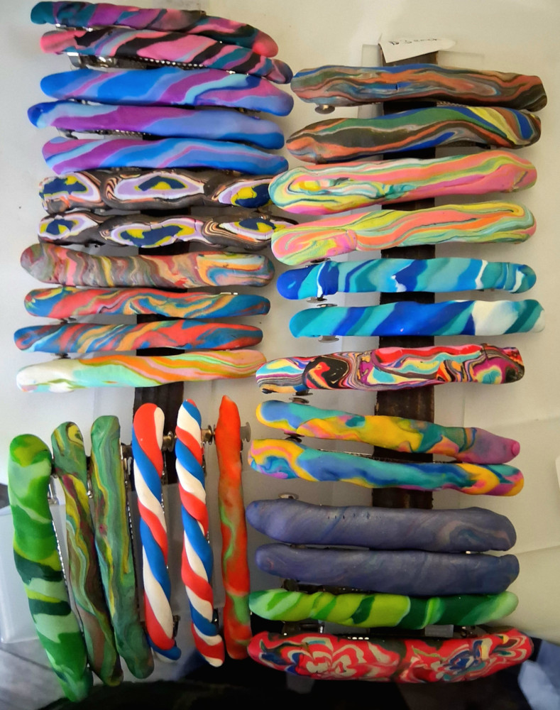 My acrylic paintings include a variety of dimensional elements like texture paste, wood, glitter, fabrics, raffia, hand cut band-sawed wood pieces, and more.